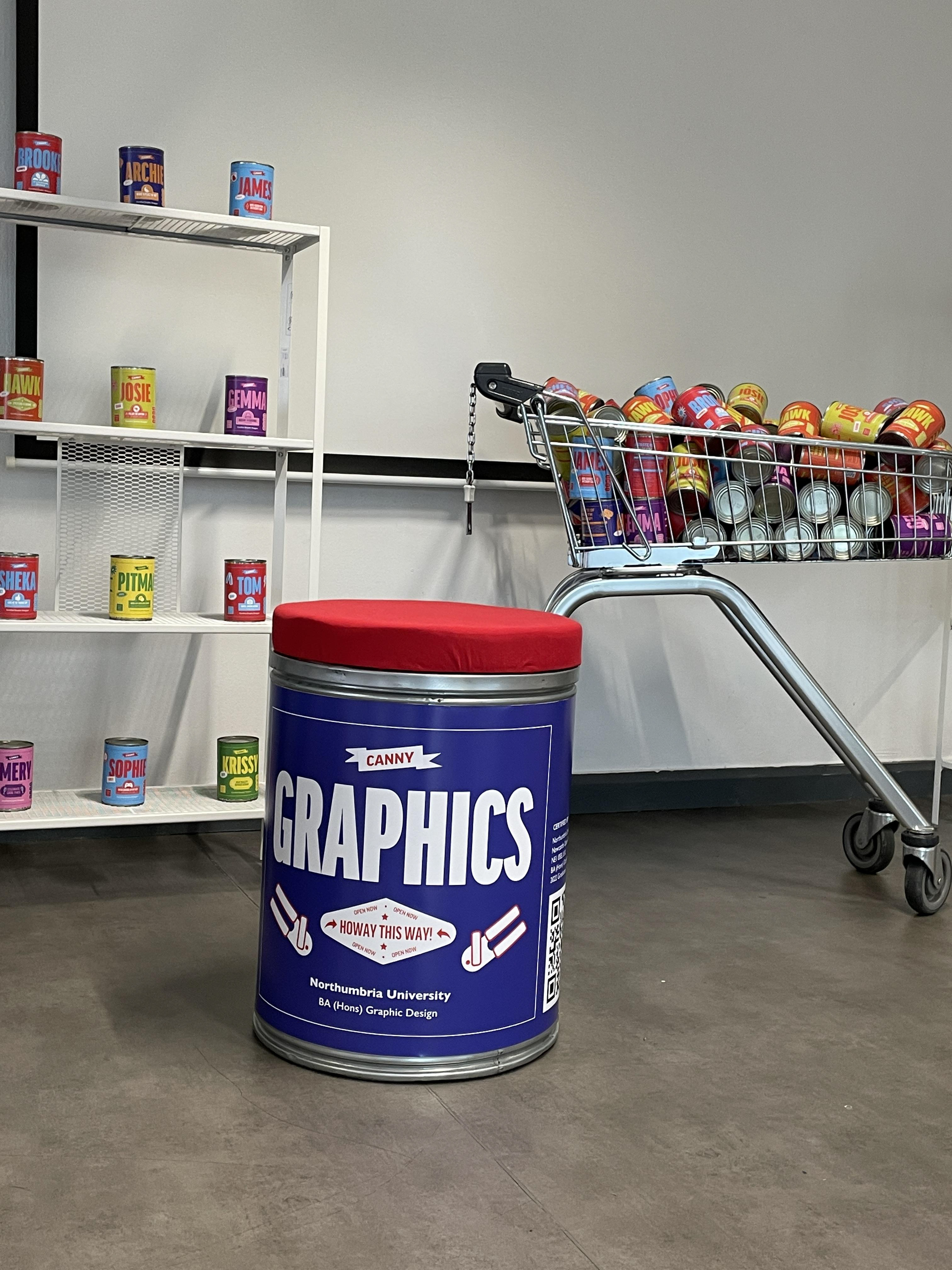 A concept based on the Geordie word ‘Canny’ that provides a chance for industry to shop for their next Designer. Cans of baked beans replace standard business cards, showcasing each persons individuality. Giving industry ‘a taste of what we’re made of!’.